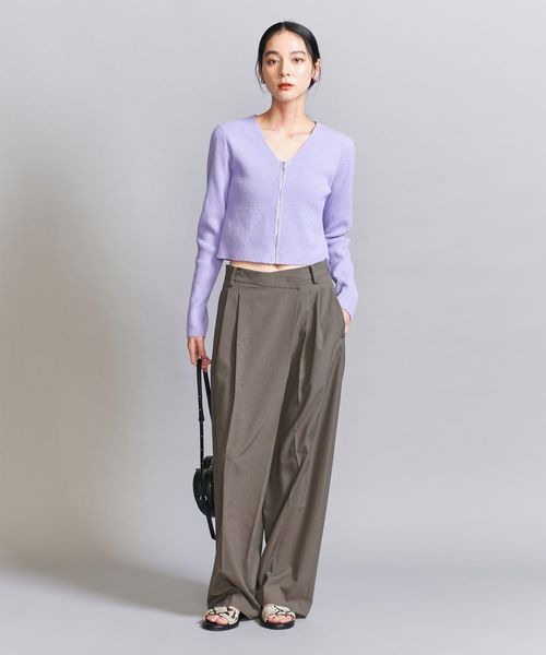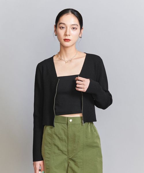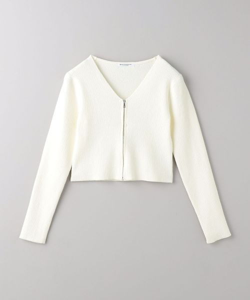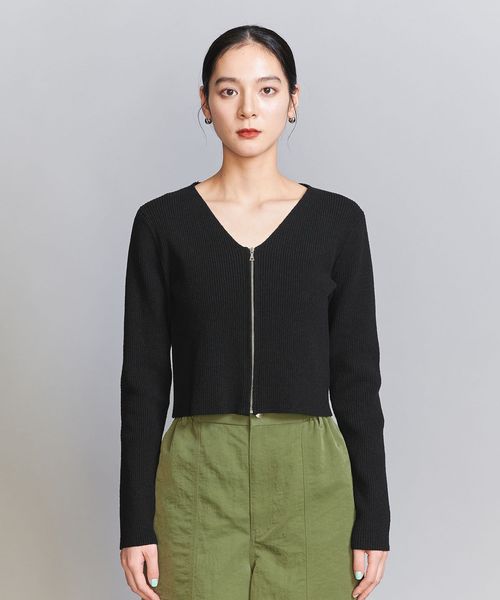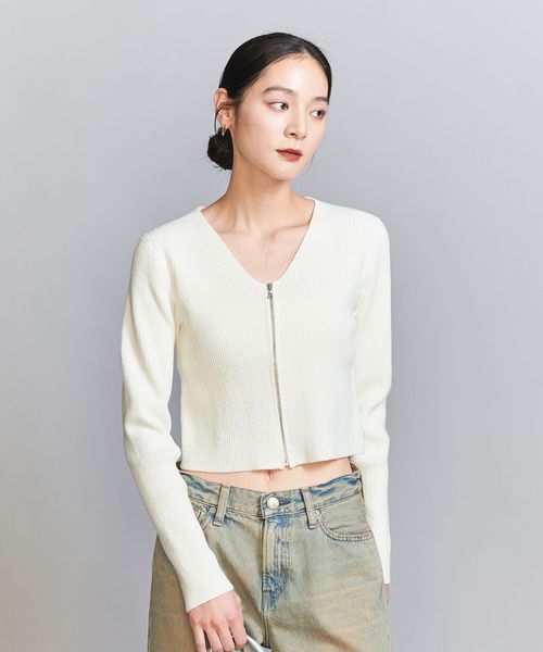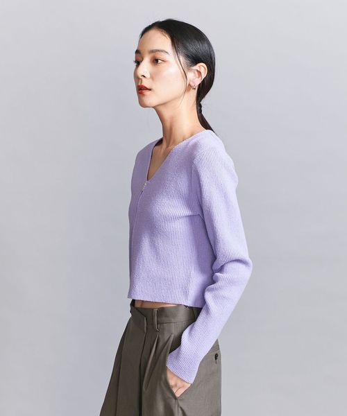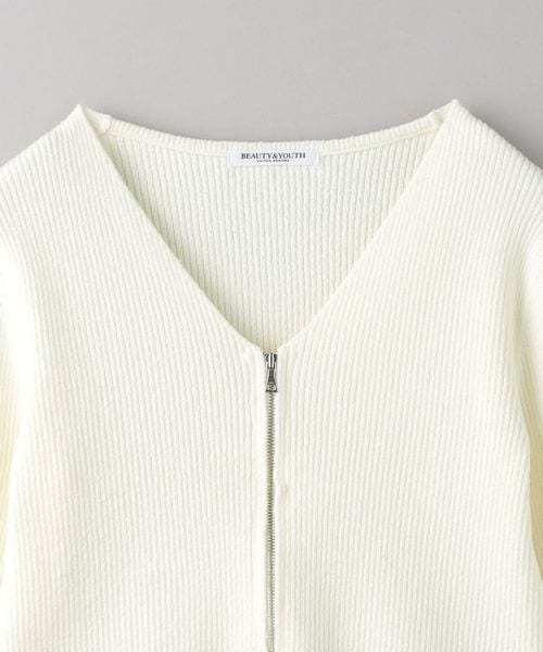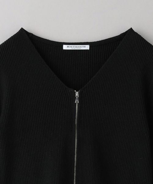 女性らしい印象のすっきりとしたVネックデザインにジップディテールがポイント。