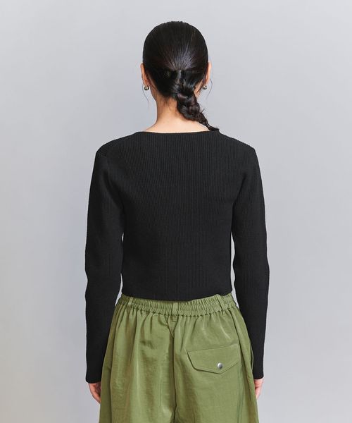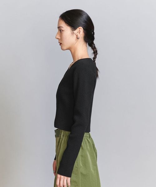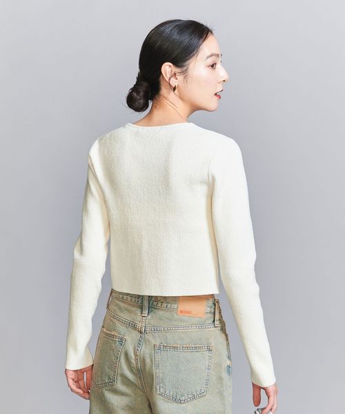 表情感のあるブークレ糸を使用したリブニットカーディガン。