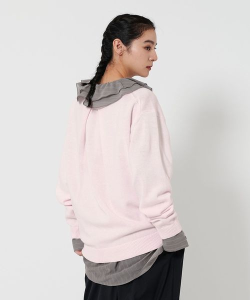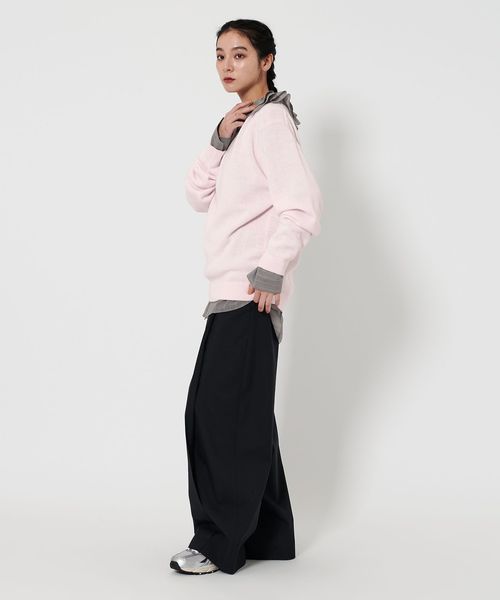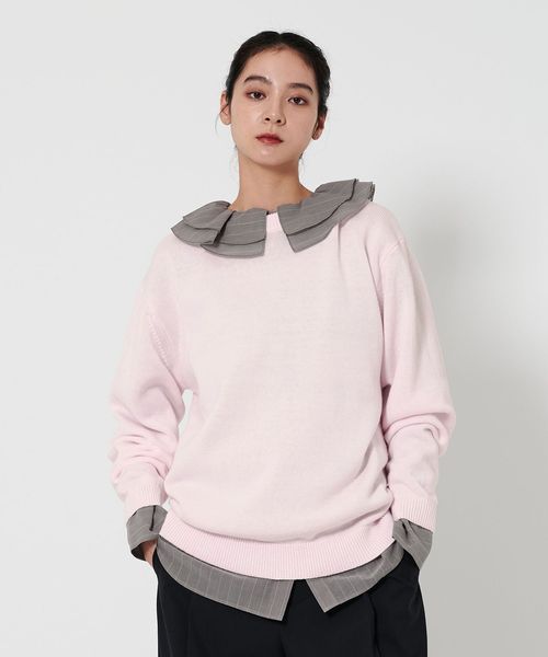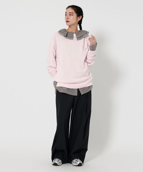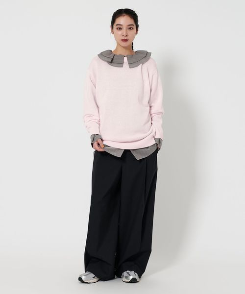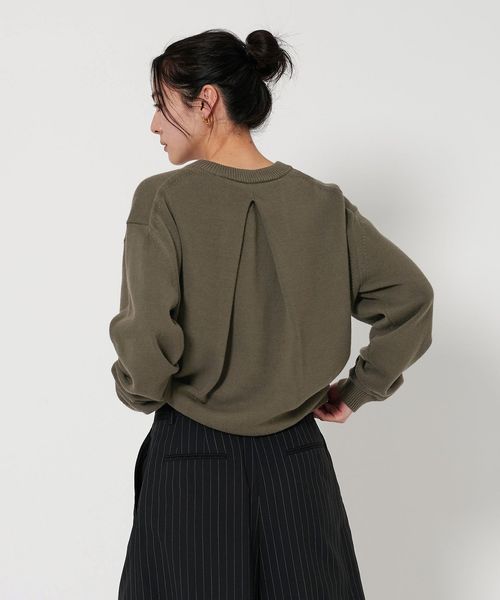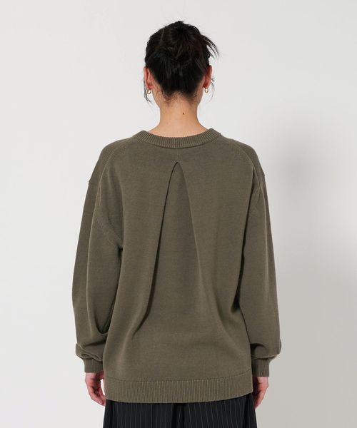 こちらは、バックスタイルのタックディテールがポイントのクルーネックニット。