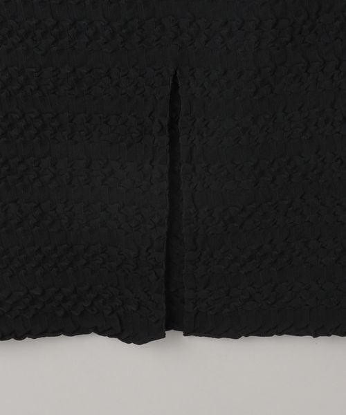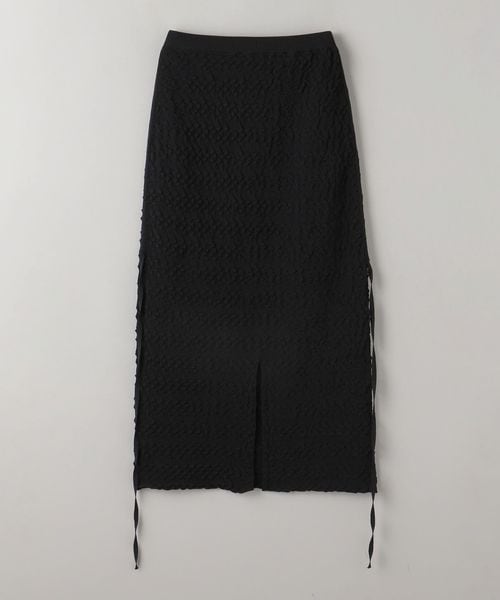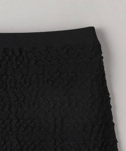 凹凸のある表面感が目をひくニットスカート。