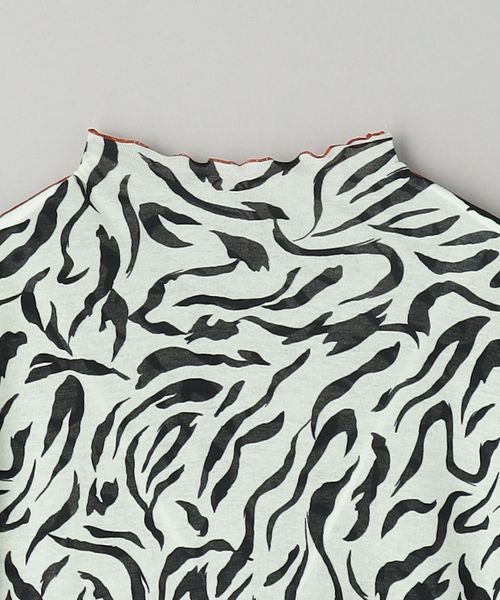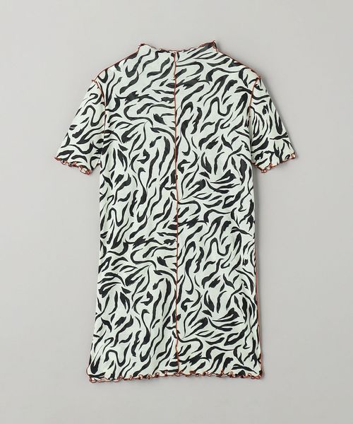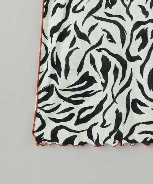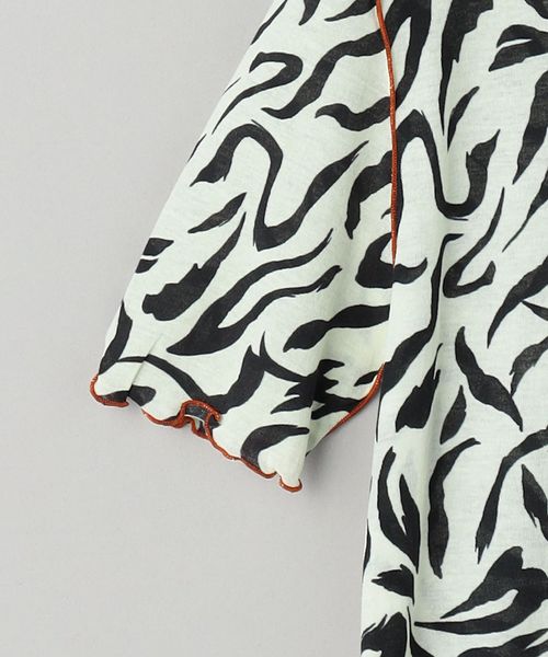 ボディラインにやさしく沿う、総柄のショートスリーブカットソー。