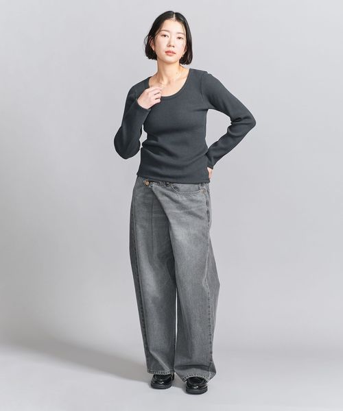 女性らしさを引き立てるジャストなサイズ感ですっきりとしたシルエット。