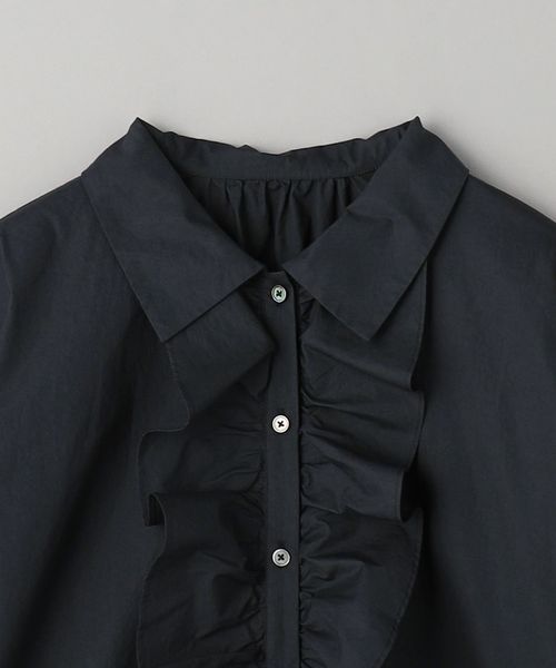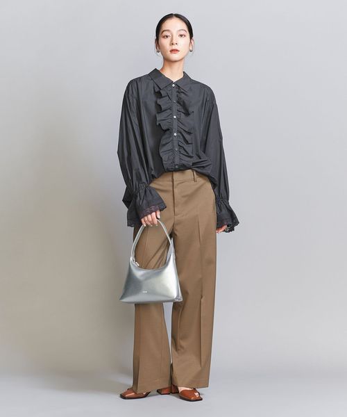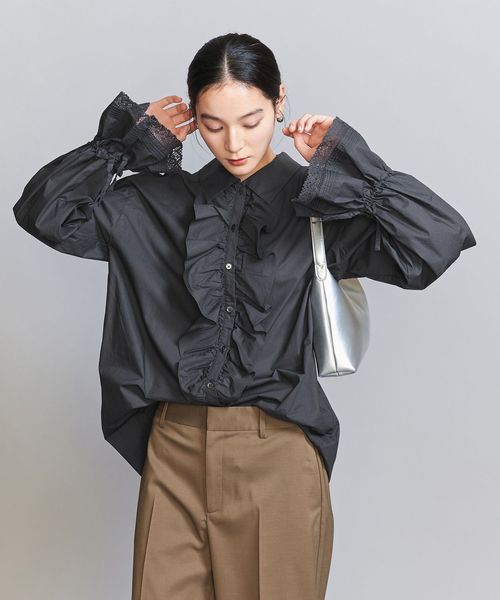 アーバンムードで着こなせるレトロライクなフリルブラウス