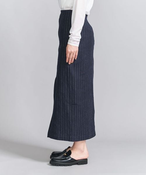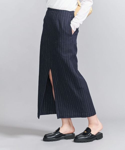 ベルトなどの付属を省き、生地の表情を活かしたスリットスカート。