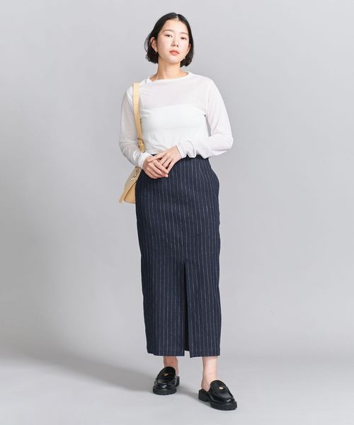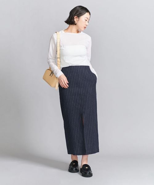ナチュラルな素材をエレガントに着こなすIラインスカート