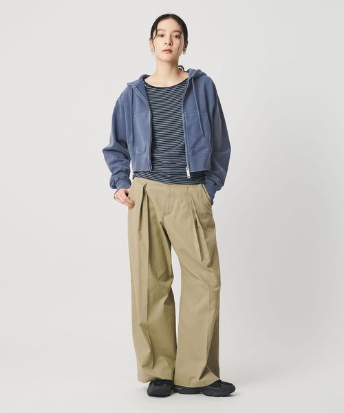 ジャケットやスプリングコートのインナーとしてフードを出した着こなしもおすすめです。