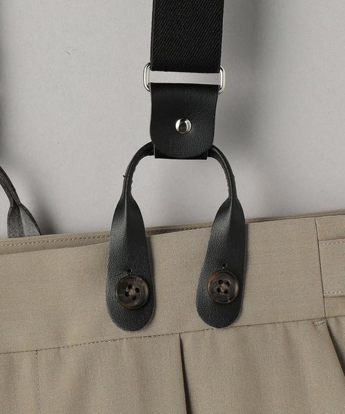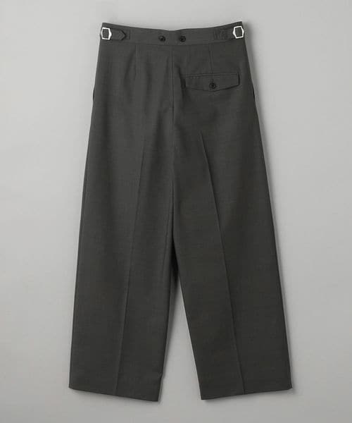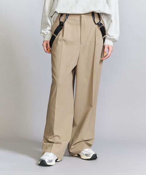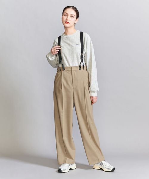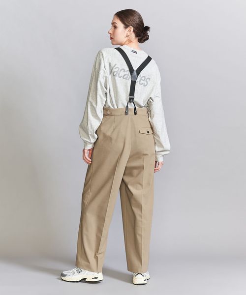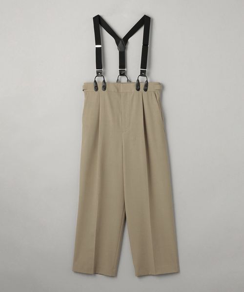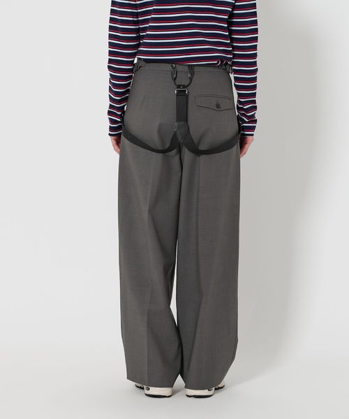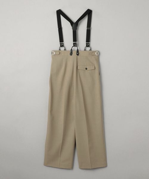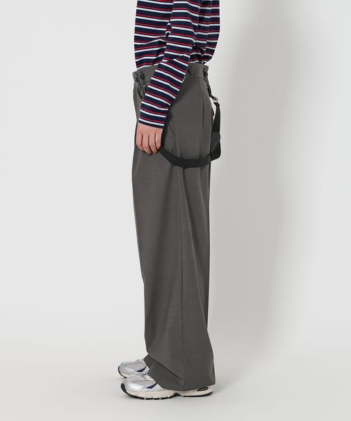 メンズライクなスラックスをベースにした、サスペンダー付きパンツ。