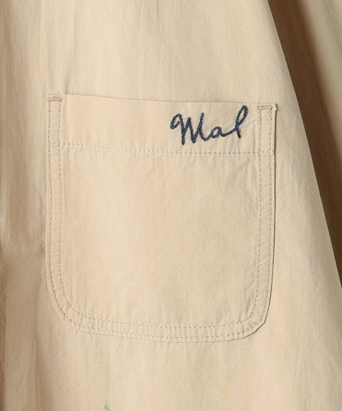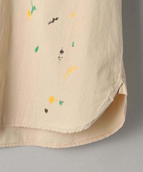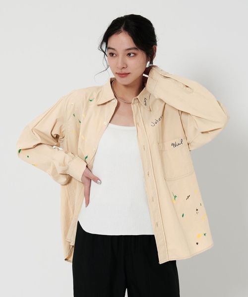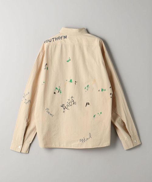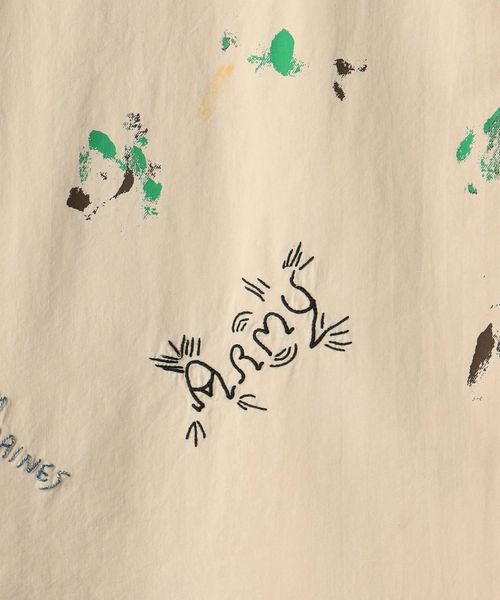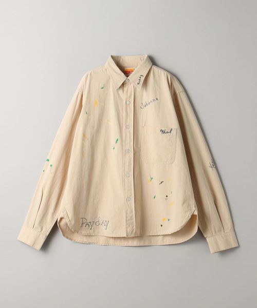 ペイントとメッセージ刺繍が施された遊び心溢れるシャツ。