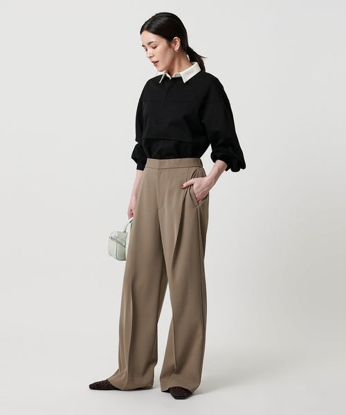 ウエスト周りのシルエットにこだわってお作りしたタックワイドパンツ。