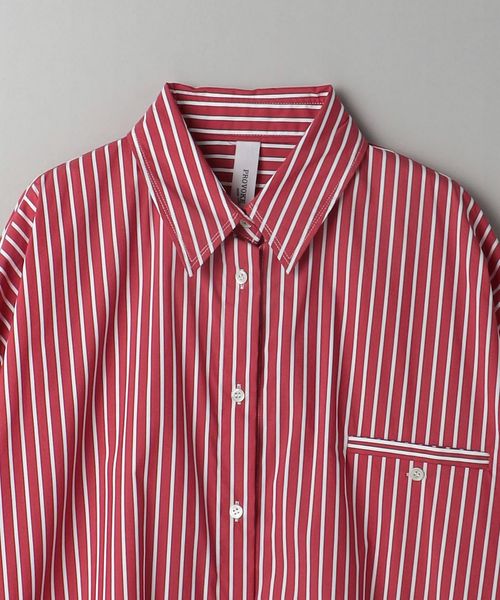 オーバーシルエットで作成したメンズライクな雰囲気漂うストライプシャツ。