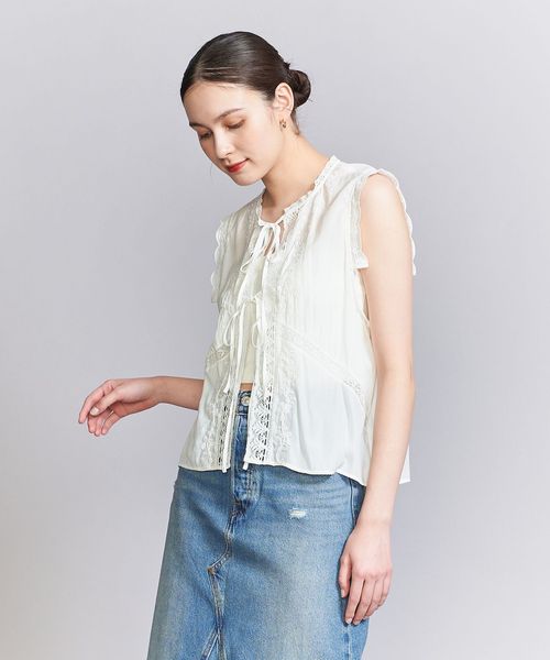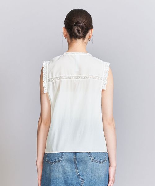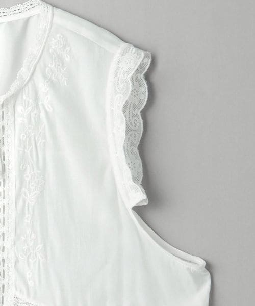 随所にあしらわれた刺繍が愛らしいノースリーブブラウス。