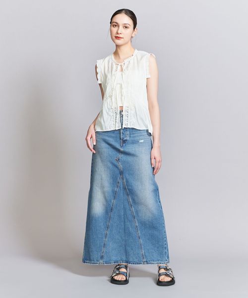 盛夏時期にはノースリーブトップスとしての着こなしも◎。