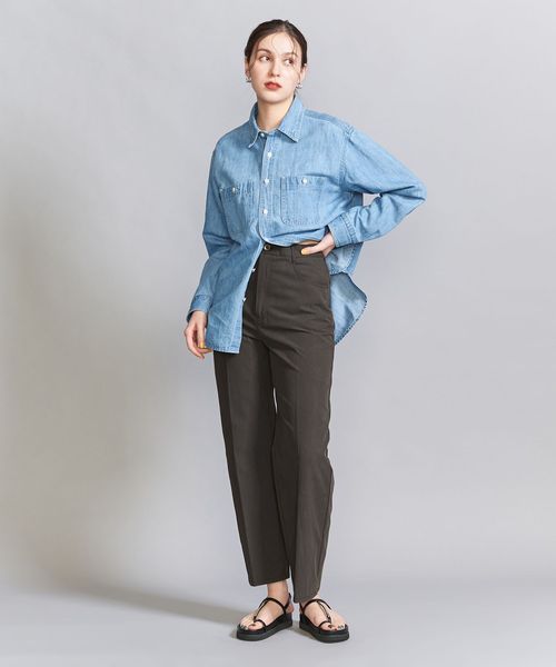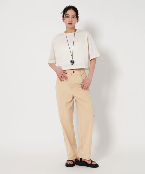 ハイウエストでスタイルアップも期待できるシンプルなストレートパンツ。
