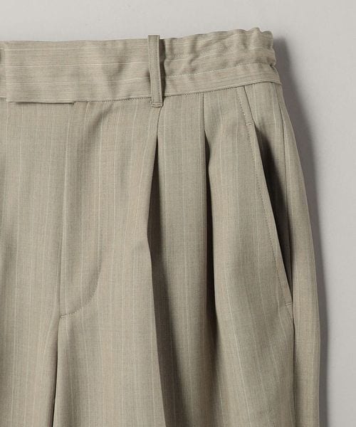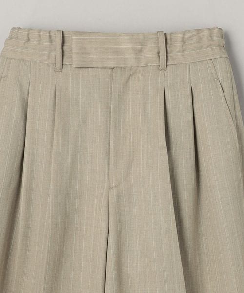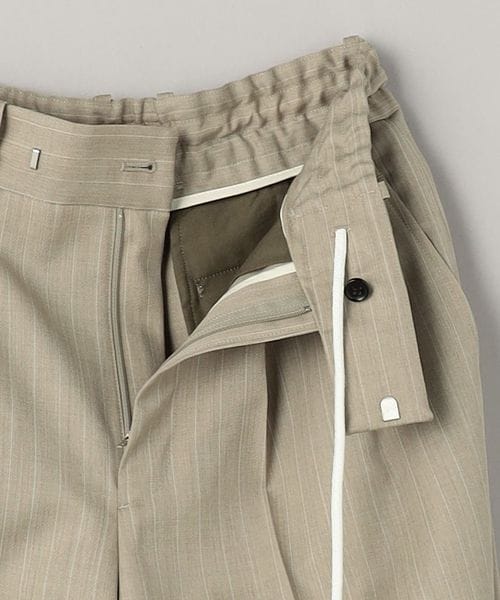 2タックのボリューミーなシルエットにセンタープレスを入れクラシカルな雰囲気に仕上げながら、ウエストの内側にはドローコードがあり、リラクシーなはき心地が楽しめるのが特徴です。