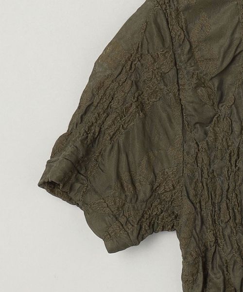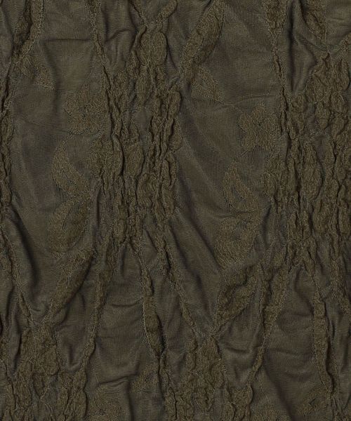 レース部分がシャーリングのようになっている特徴的な素材を使用したショートスリーブTシャツ。
