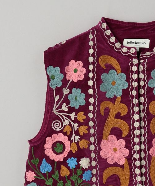 モダンなビンテージルックを楽しめる<Lollys Laundry>の刺繍ベスト