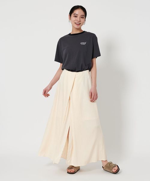 ホック付きのスリットディテールが新鮮なロングスカート。