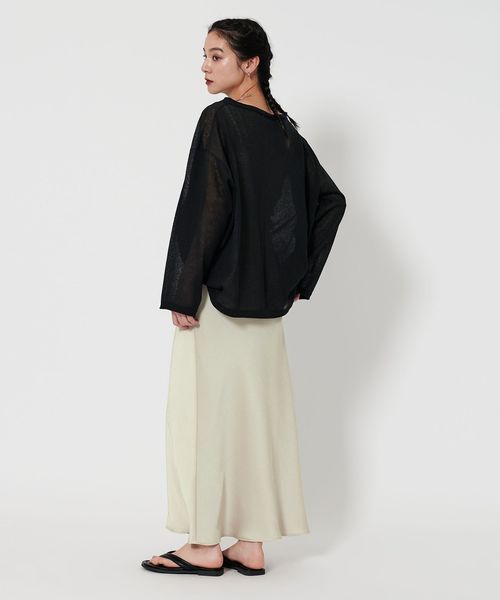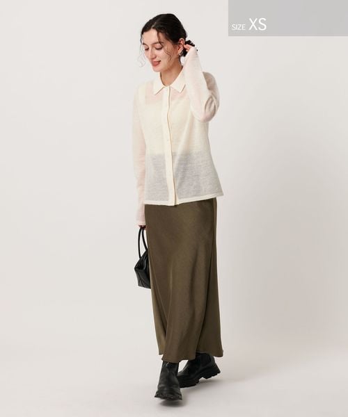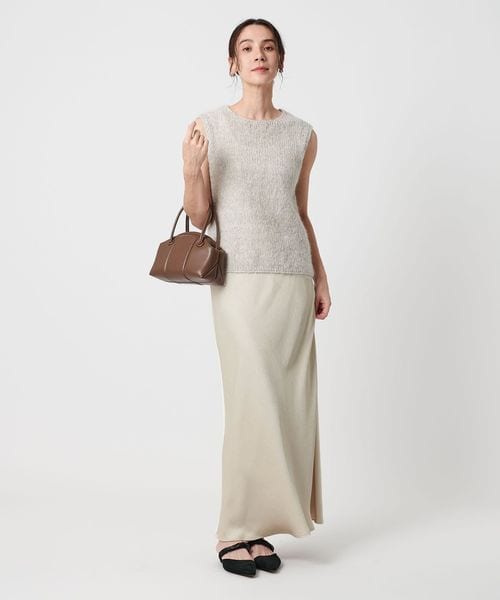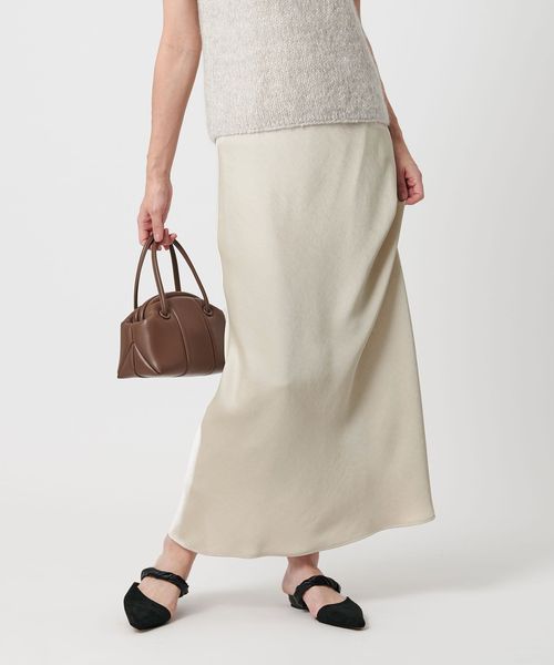 適度にボディラインに沿うマーメイド型がフェミニンムード漂う一着。