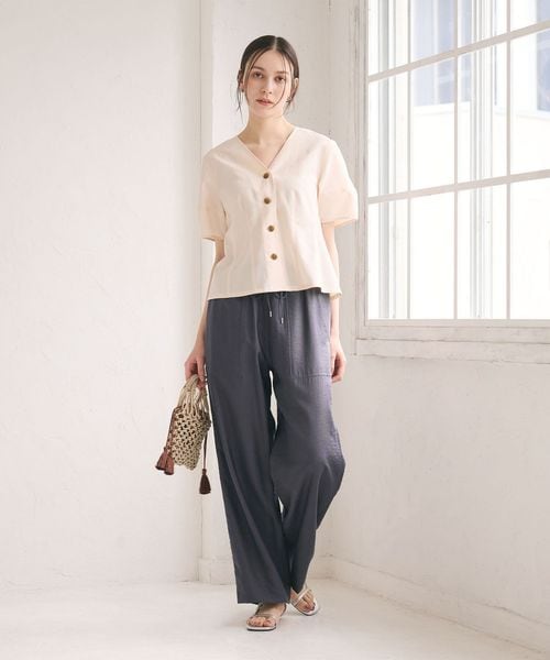 カジュアル感と品の良さを両立したパンツは、プリントTシャツやシアーカットソーから、きれいめなブラウスまで好相性。