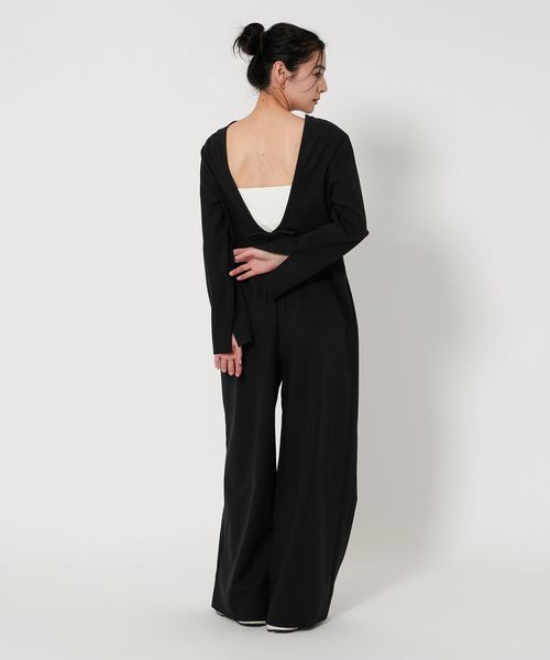 こちらは、深めのバックラウンドネックがヘルシーなオールインワン。