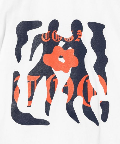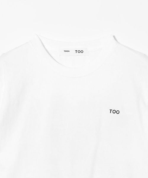 刺繍で表現した左胸の“TOO”のロゴとバックプリントが印象的なTシャツ。