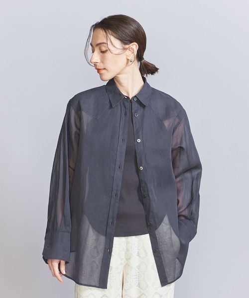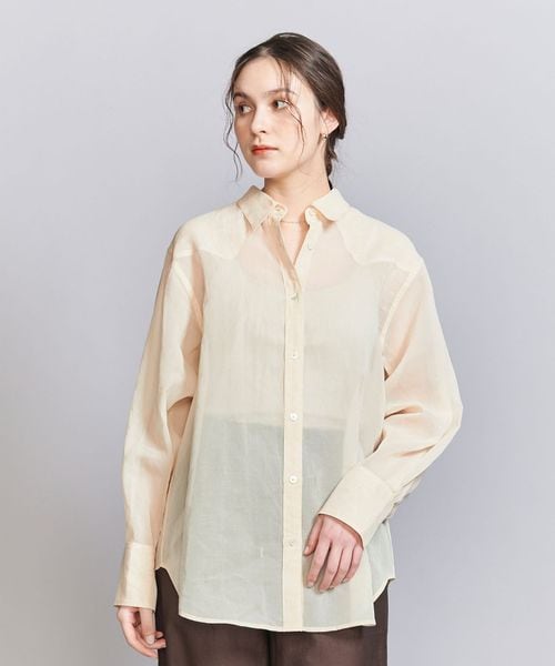 ドライタッチで清涼感のあるコットンオーガンジー素材を使用したシアーシャツ。