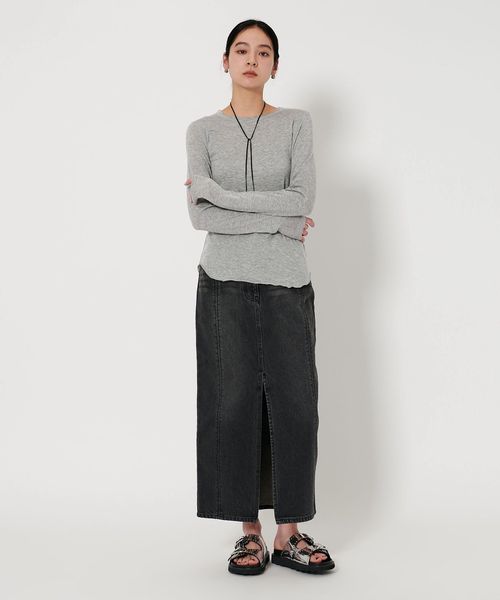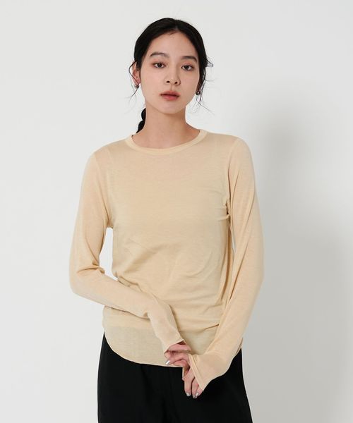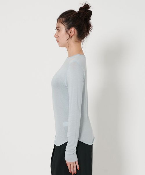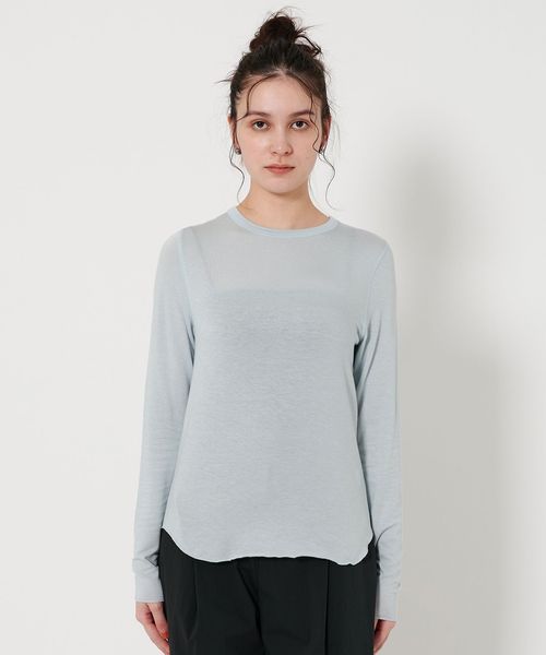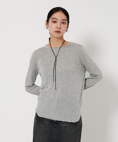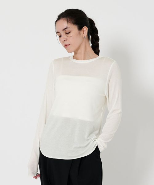 適度な透け感とラウンドヘムが、レイヤード時にもさりげなく存在感を発揮。