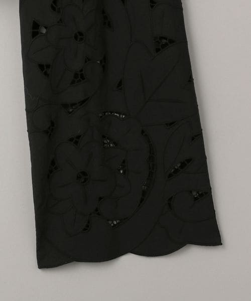 全面に刺繍を入れた華やかなルックスを活かし、トップスにはシンプルなコンパクトニットを合わせたり、ゆるめのジャケットですっきりと着こなすのがおすすめ。