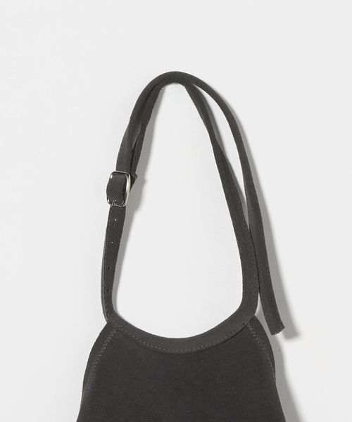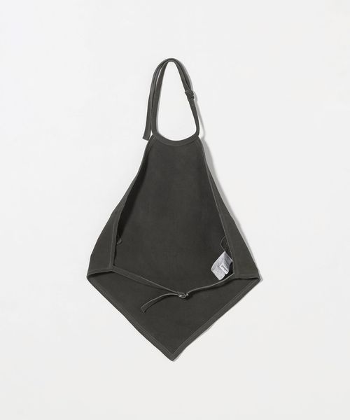 グレーのスエード素材を使用した、オープンバックのトライアングルトップス。