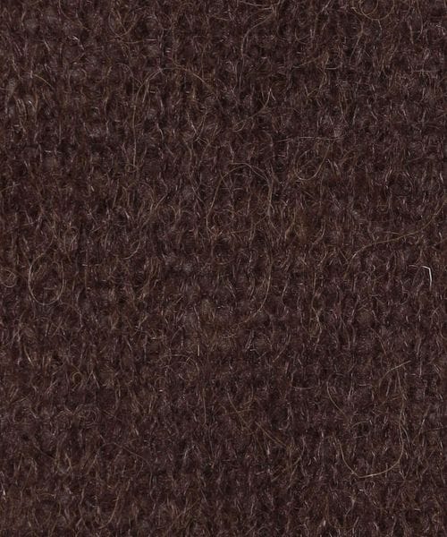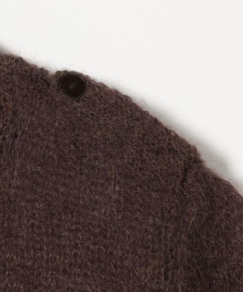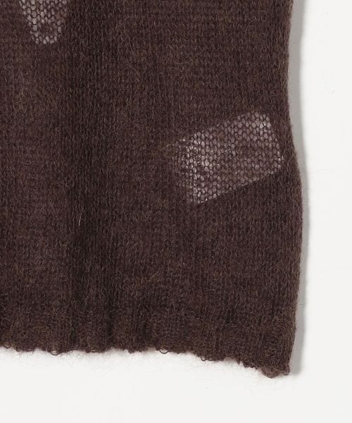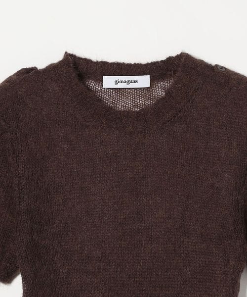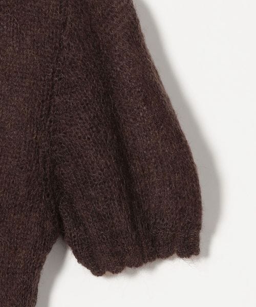 ブラウンのモヘヤ混糸を繊細な編地で編みあげた半袖ニットトップス。