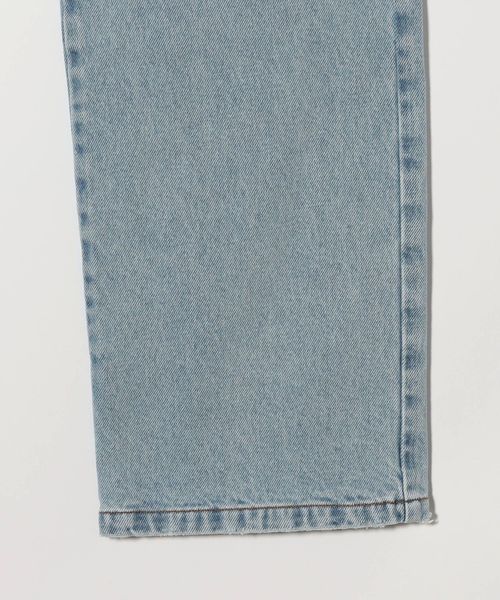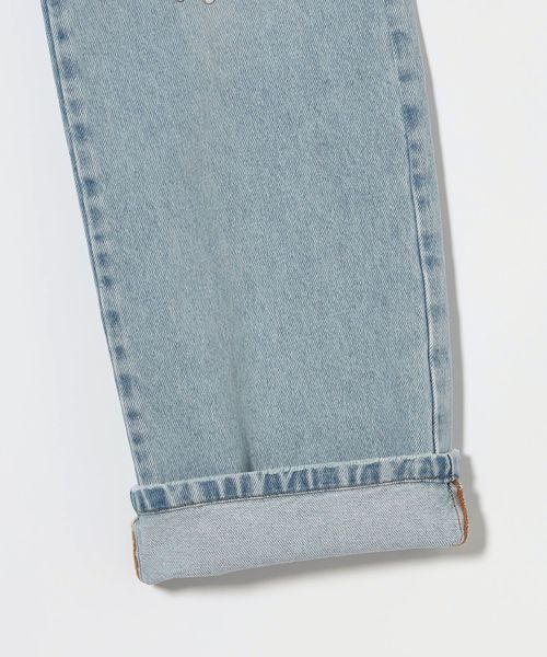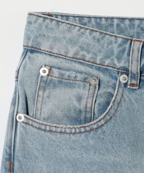 ライトウォッシュのブルーデニムを使用した、ストレートフィットのデニムパンツ。
