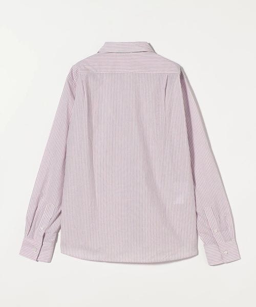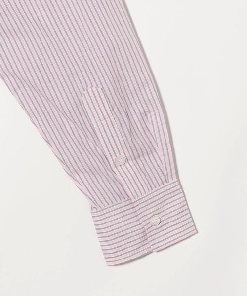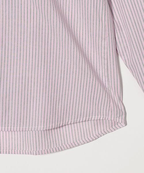 軽量のコットン素材を使用した、ピンクストライプ柄の長袖シャツ。