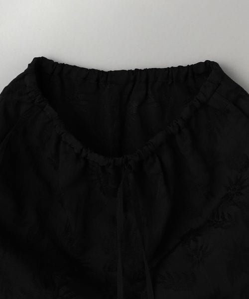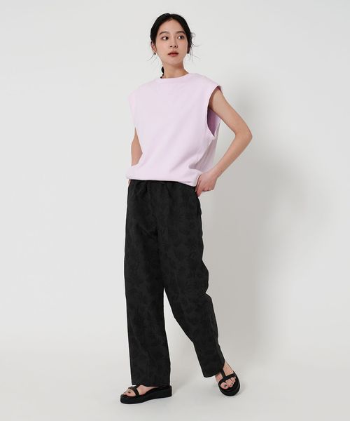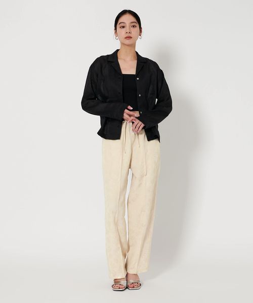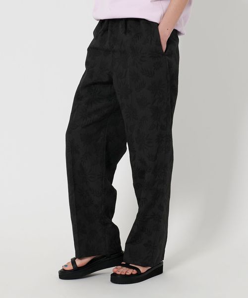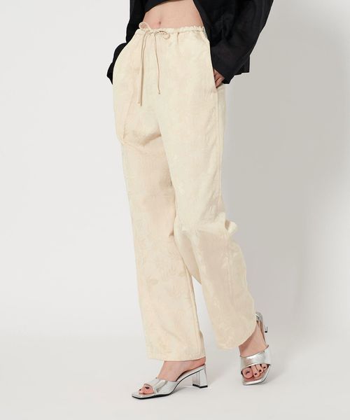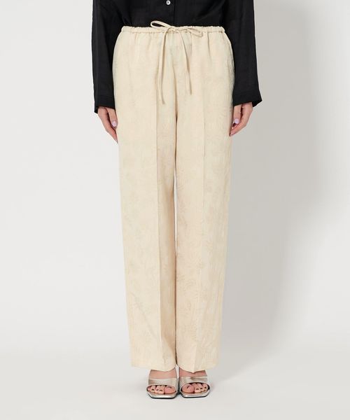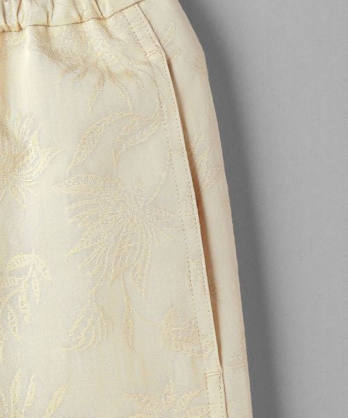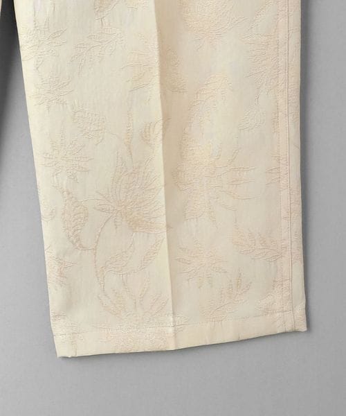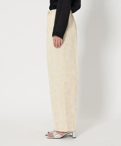 花柄部分にブライトレーヨン糸を使用し、上品な光沢に仕上げたジャガードパンツ。