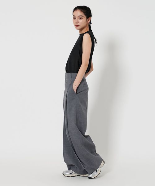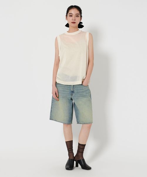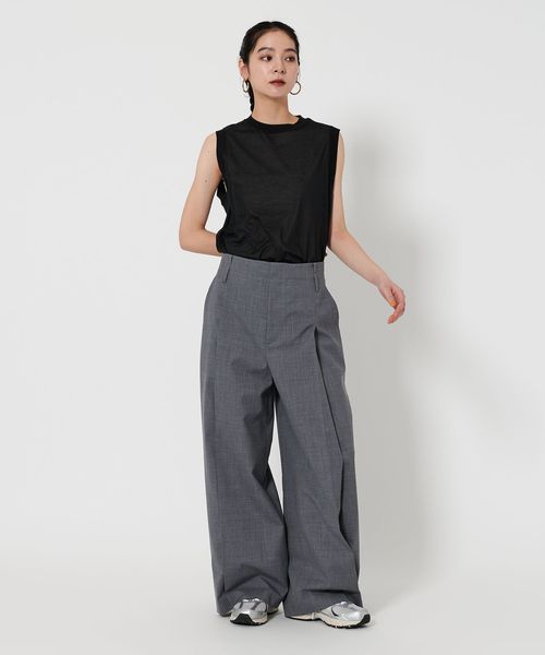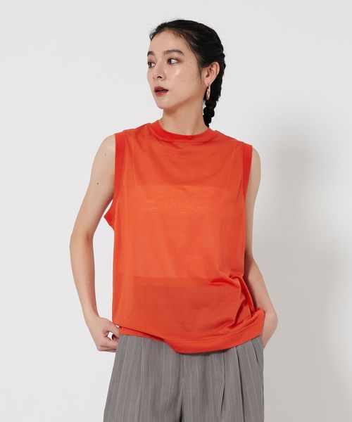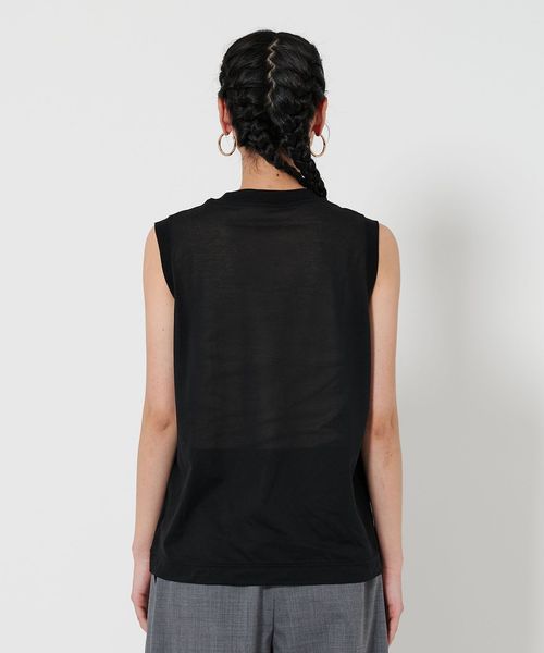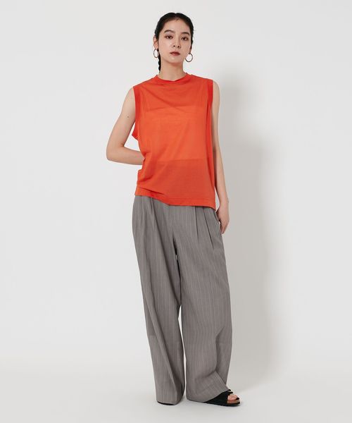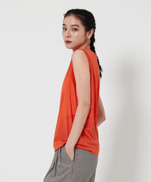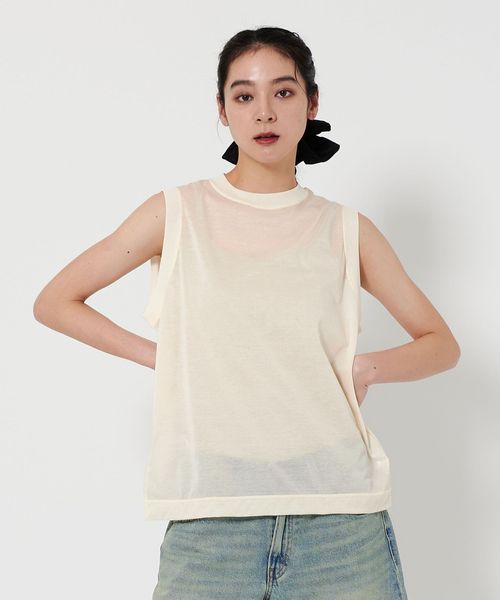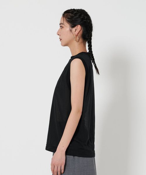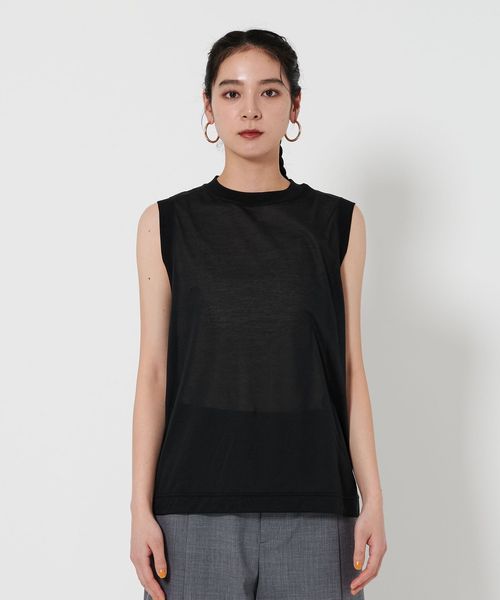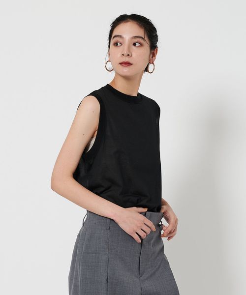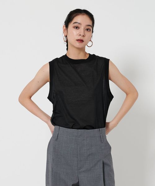 こちらは、ハリ感のあるシアー生地を、リラックスシルエットで仕上げたノースリーブ。