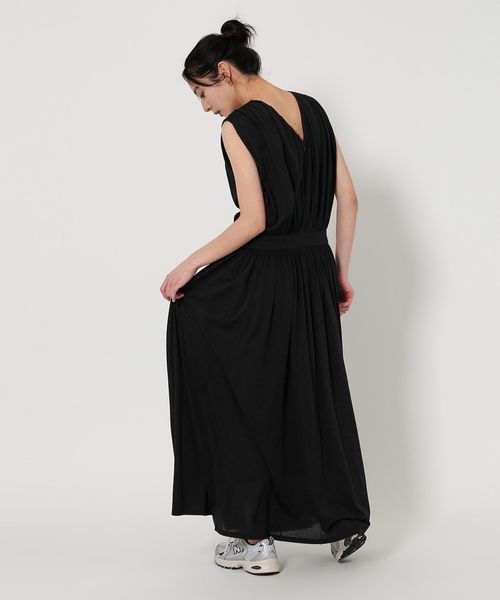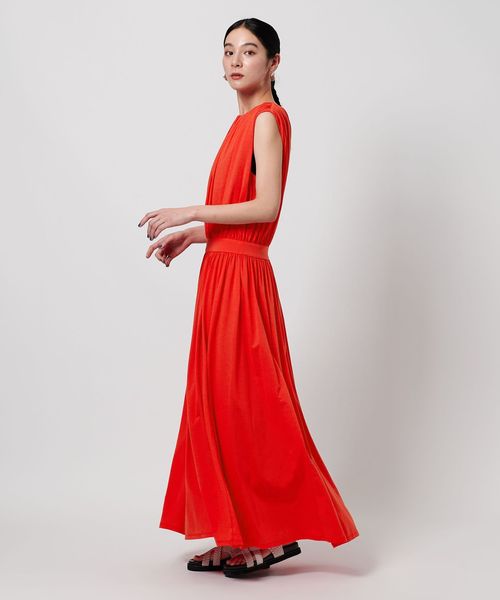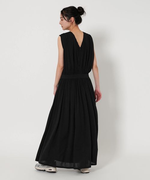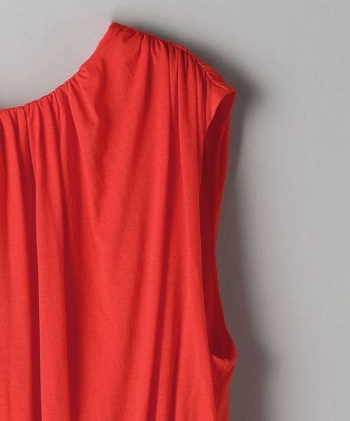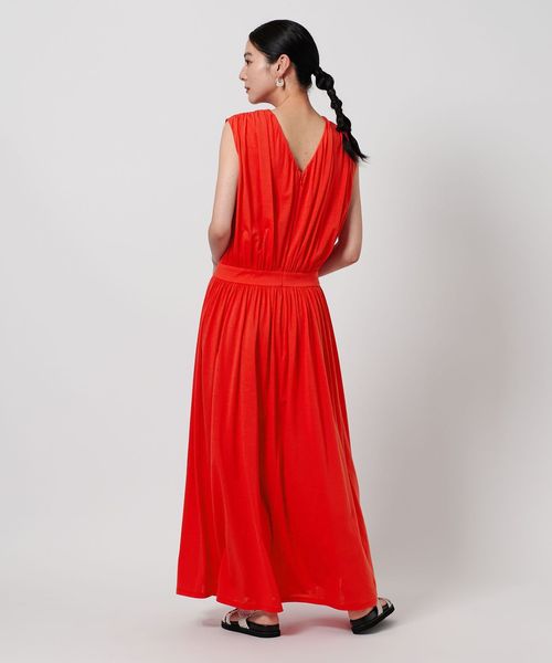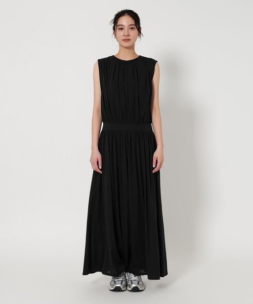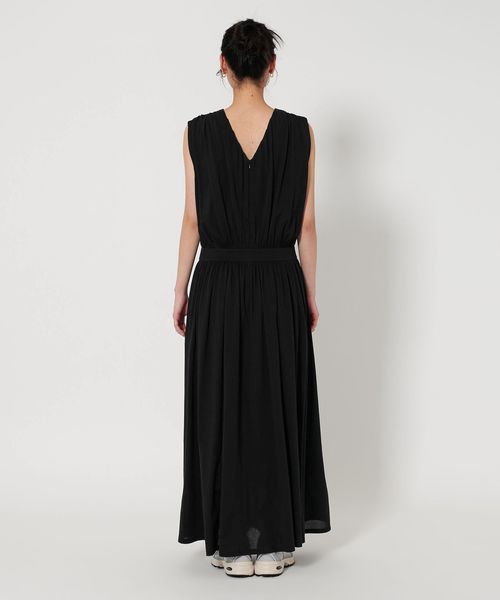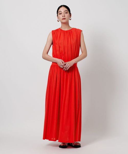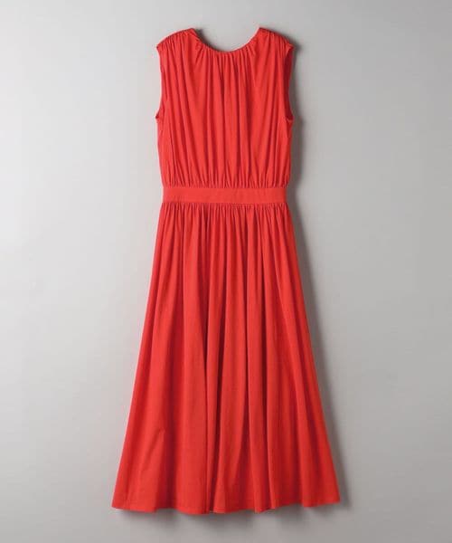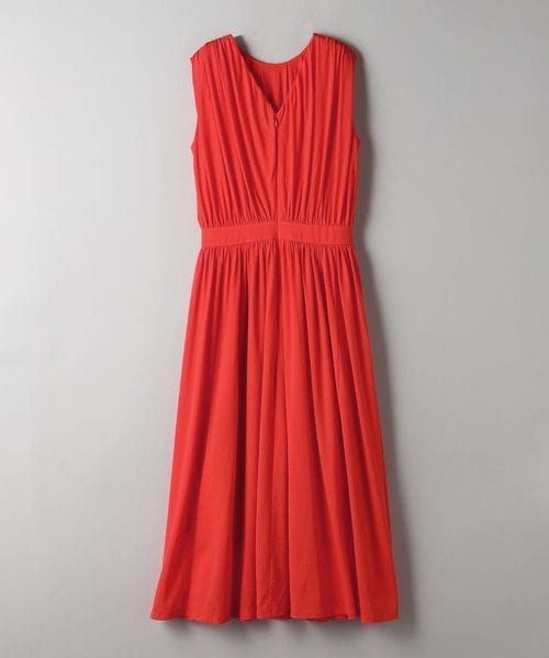 こちらは、たっぷりとギャザーを入れた、レディな印象のフレア分量感が特徴のノースリーブワンピース。