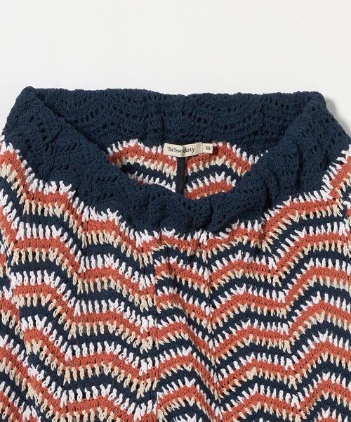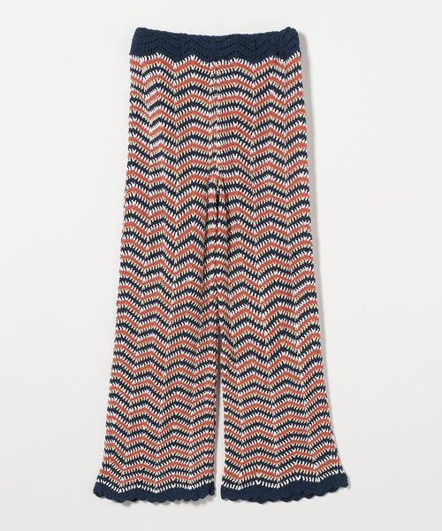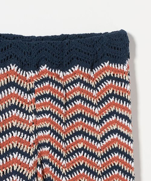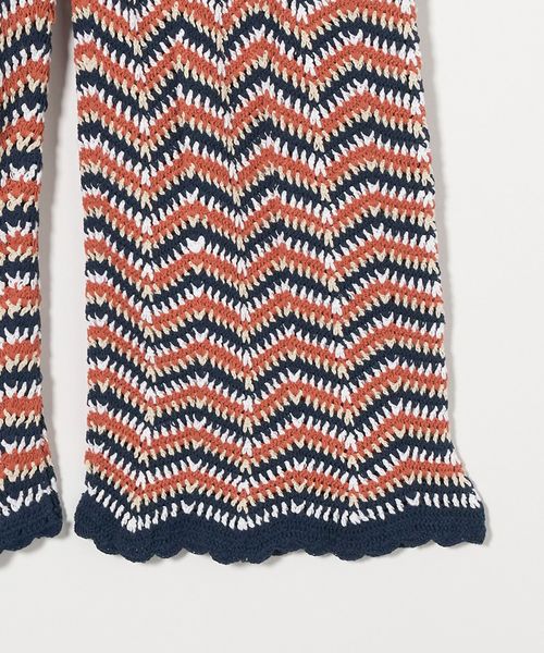 クラフト感のあるトリコロールカラーのクロシェパンツ。