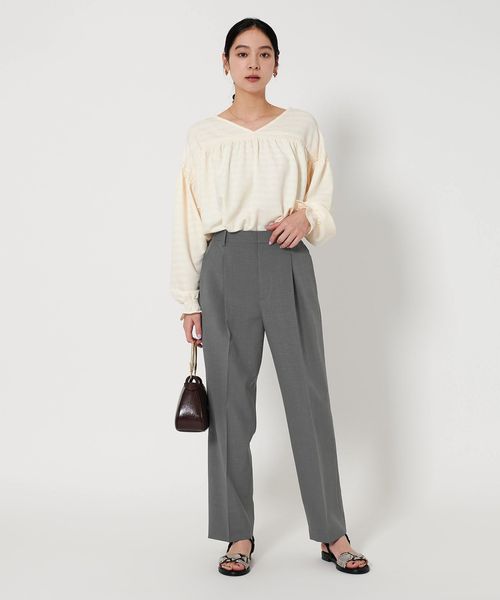 ワンタックを入れ、やや分量を持たせたゆとりのあるシルエットに仕上げています。