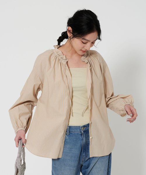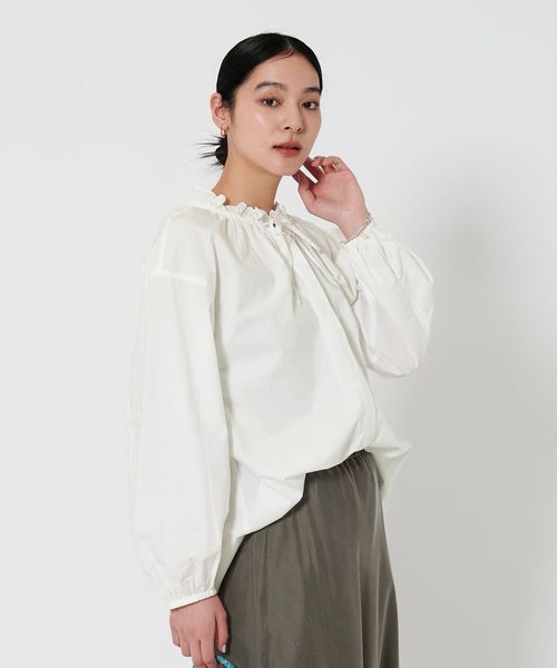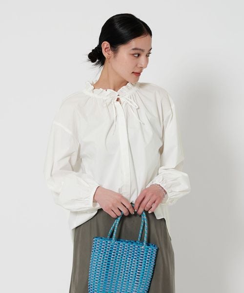フェミニンディテールながら、製品洗いを施しカジュアルな印象に仕上げたブラウス。
