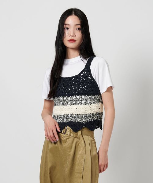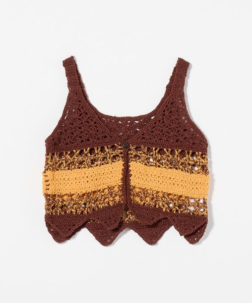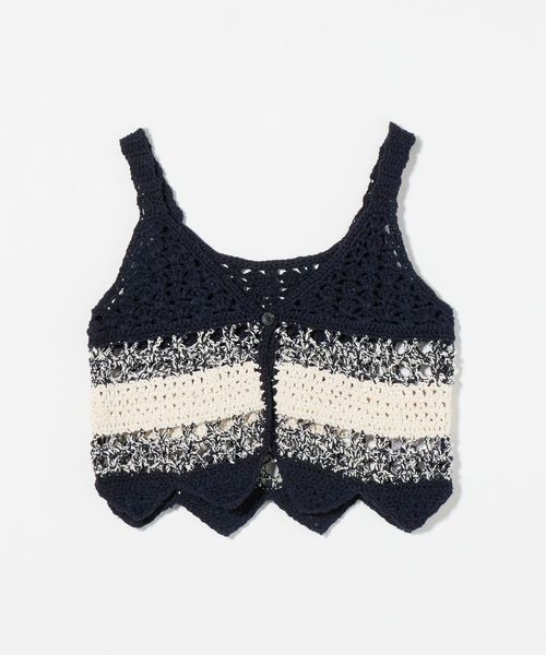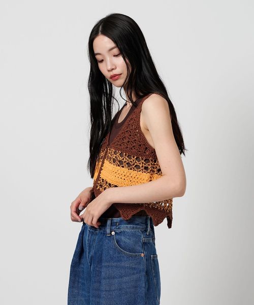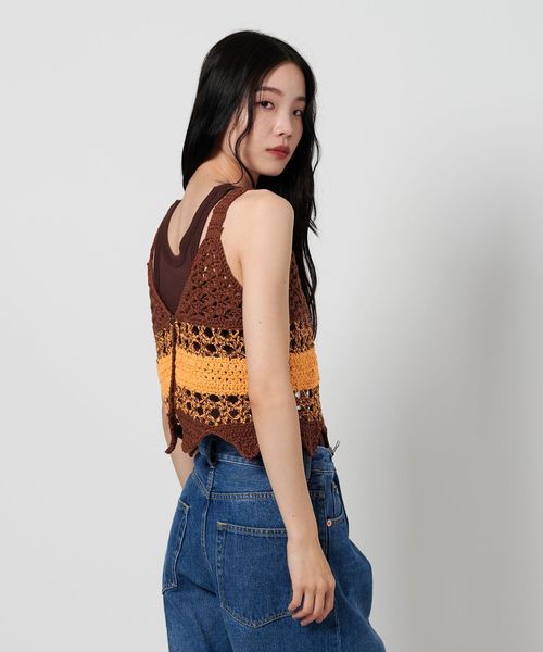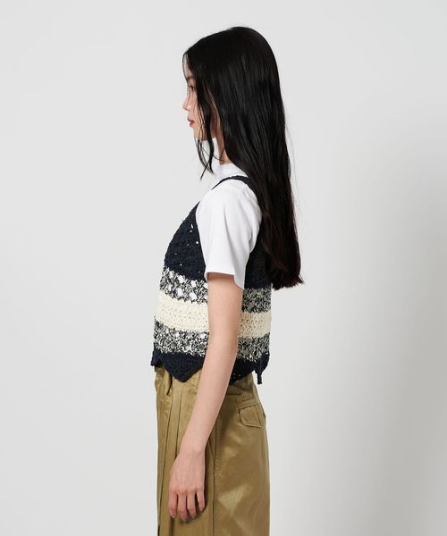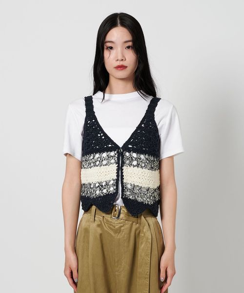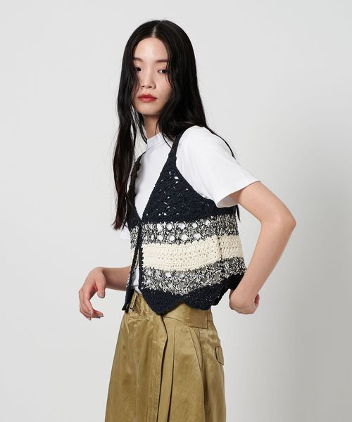 前後2WAYで着用可能な透かし編みが特徴のニットベスト。