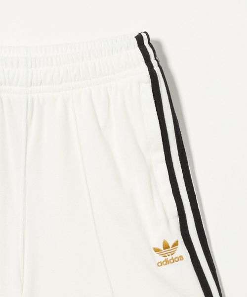 サイドのスリーストライプスにゴールドのトレフォイルロゴが存在感を放つ、ショートパンツ。