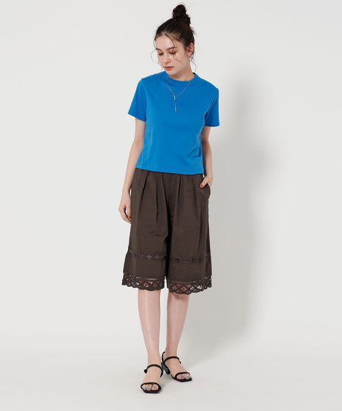 クラフト感のあるバテンレースをふんだんに使用したハーフパンツ。