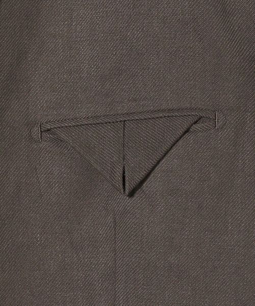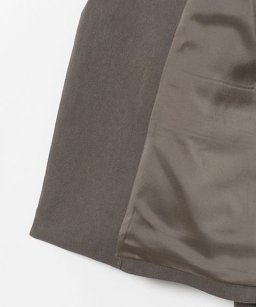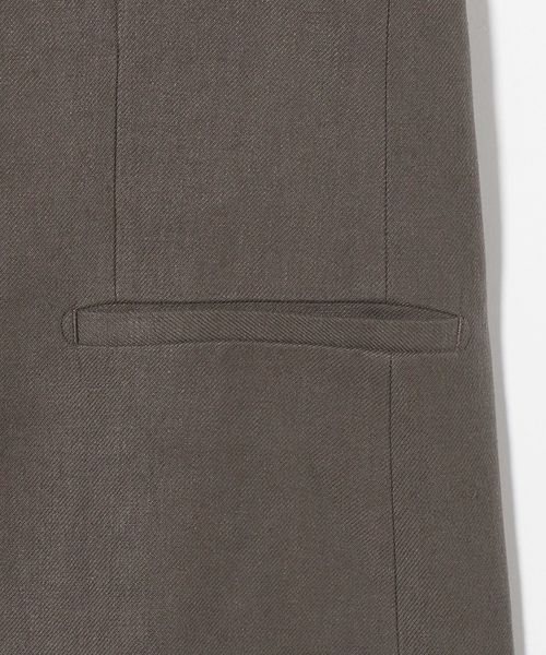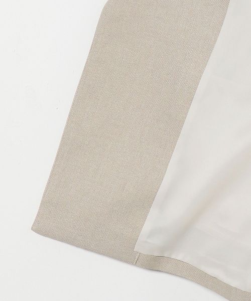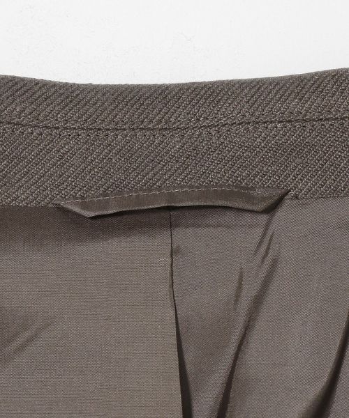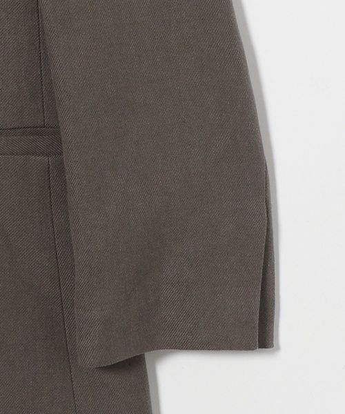 胸ポケットやラペルの切替位置にこだわり、肩下がりも傾斜を出すことでモードな雰囲気に仕上げています。