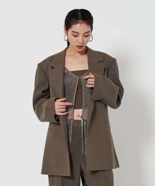 こちらは、大きめのサイジングに仕上げた抜け感漂うジャケット。