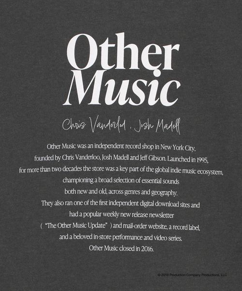 独特なセレクトや個性的なインストアライブなどが世界中の音楽ファンに愛されていた伝説のレコードショップ<OTHER MUSIC>の別注Tシャツ。