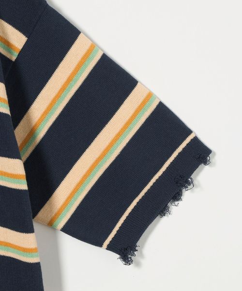 配色にこだわったボーダー柄に、袖口、裾にグランジ加工を施した着映えが叶う一着。