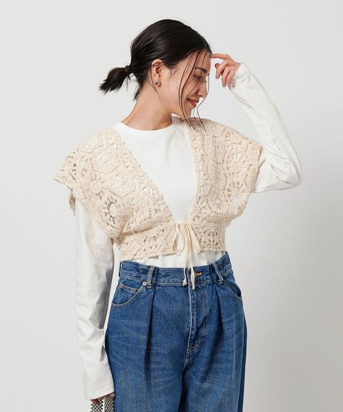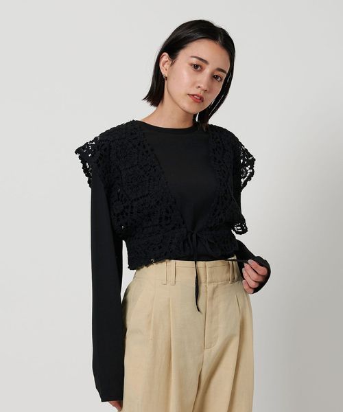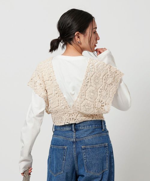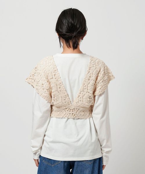 繊細なレース刺繍のベストとロングスリーブTシャツがセットになったアイテム。