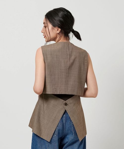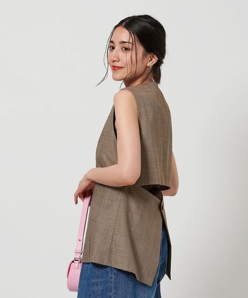フロントはシンプルながら、バックディテールがスタイリッシュな装いを演出し、肌を覗かせたヘルシーなスタイルからインナーアレンジまで幅広くコーディネートをお楽しみいただけます。