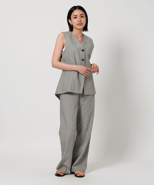 同素材のパンツを合わせたセットアップスタイルもぜひ。