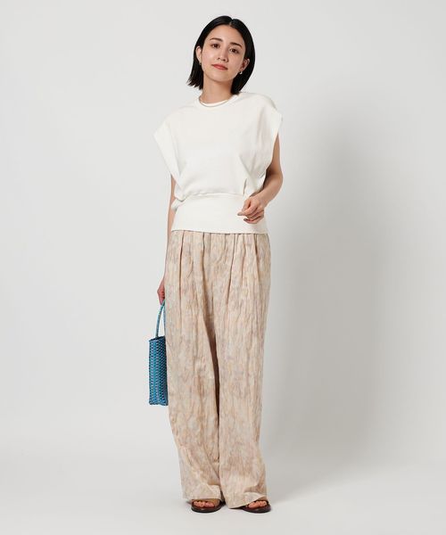 タックスカートやラップパンツなどボリューム感のあるボトムを合わせた、メリハリのある着こなしがおすすめです。