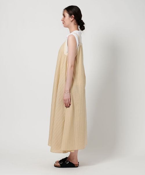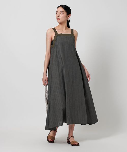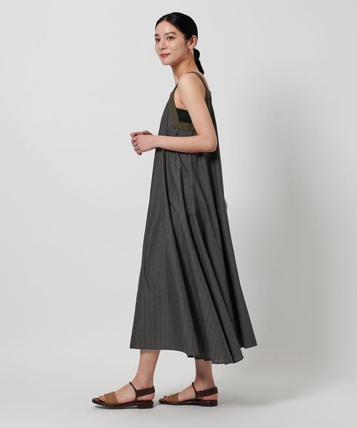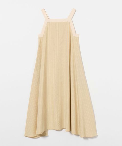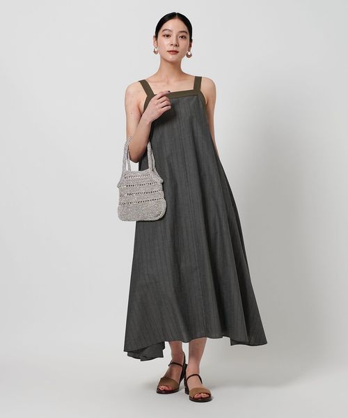 スクエアネックに脇下がりのフレアシルエットで仕上げた、涼やかな雰囲気漂うデザイン。